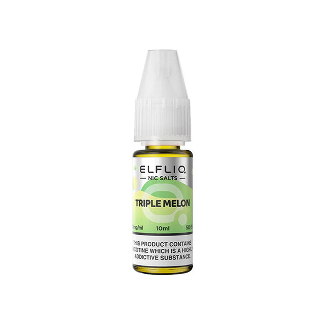 Triple Melon Nic Salt E-Liquid by Elf Bar Elfliq blends watermelon, honeydew, and muskmelon for a sweet and juicy vape experience with every inhale, offering a refreshing and tropical flavour fusion.